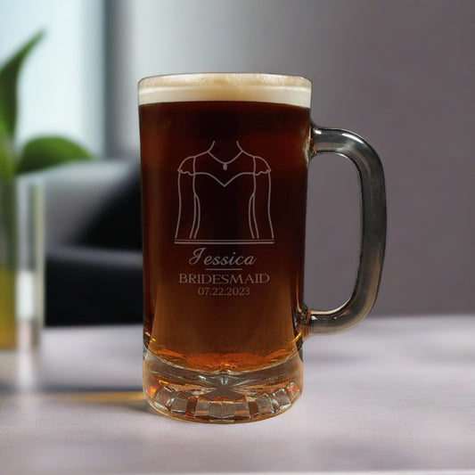 Bridesmaid Design 16oz Engraved Beer Mug - Wedding Party Personalized Gift