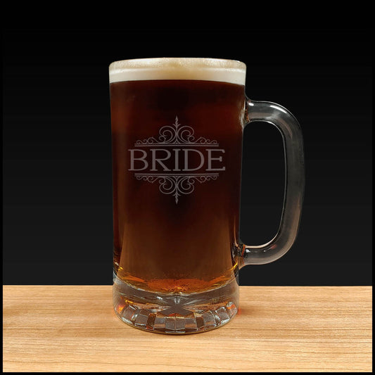 Bride 16oz Engraved Beer Mug - Wedding Personalized Gift