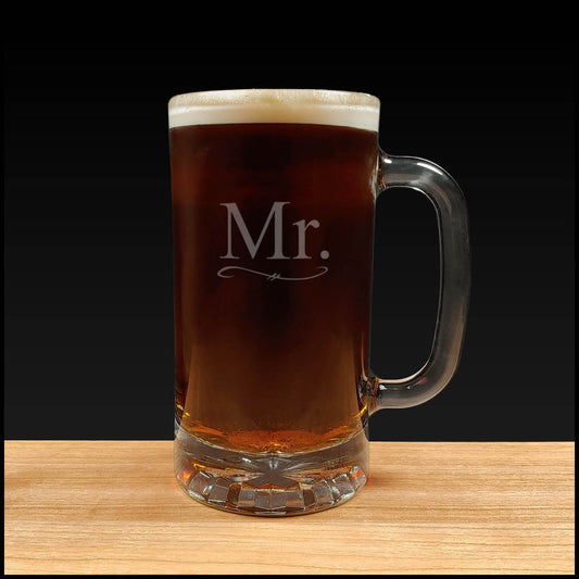 Mr. and Mrs. 16oz Engraved Beer Mug - Set of 2 - Wedding Personalized Gift