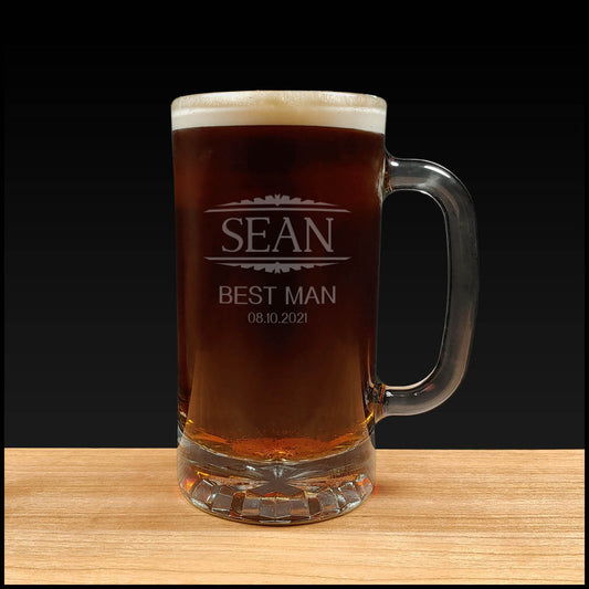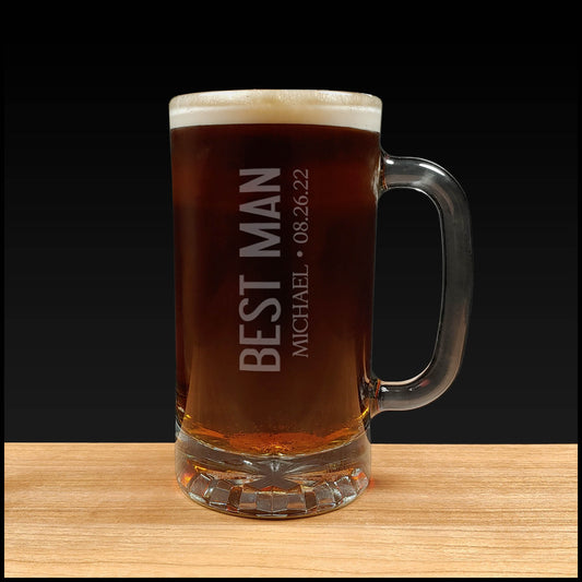 Best Man 16oz Engraved Beer Mug - Our most Popular Beer Mug for the Wedding Party - Design 3