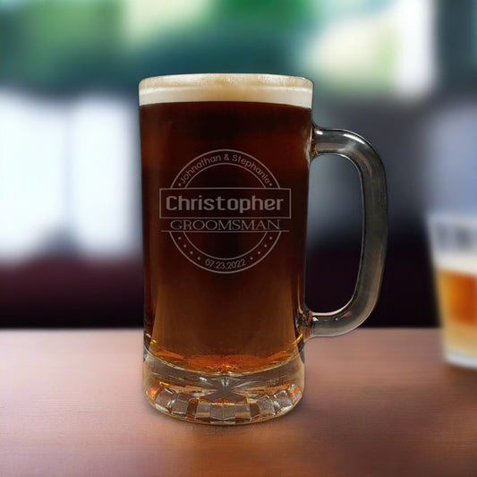 Groomsman 16oz Engraved Beer Mug - 16oz Engraved Beer Mug - Wedding Party Personalized Gift - Groom, Best Man, Father of the Bride and Groom