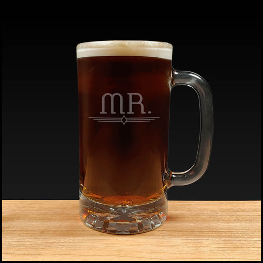 Mr. and Mrs. 16oz Engraved Beer Mug - Wedding Personalized Gift - Set of 2