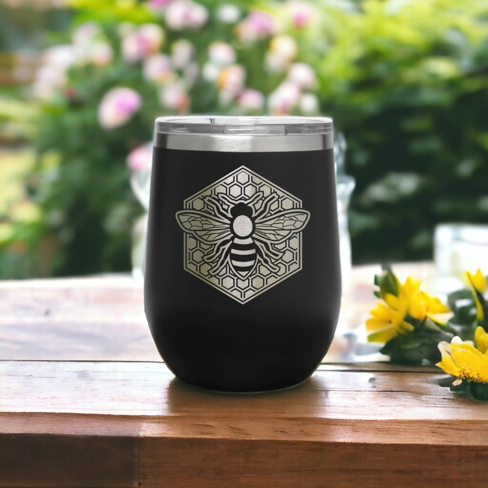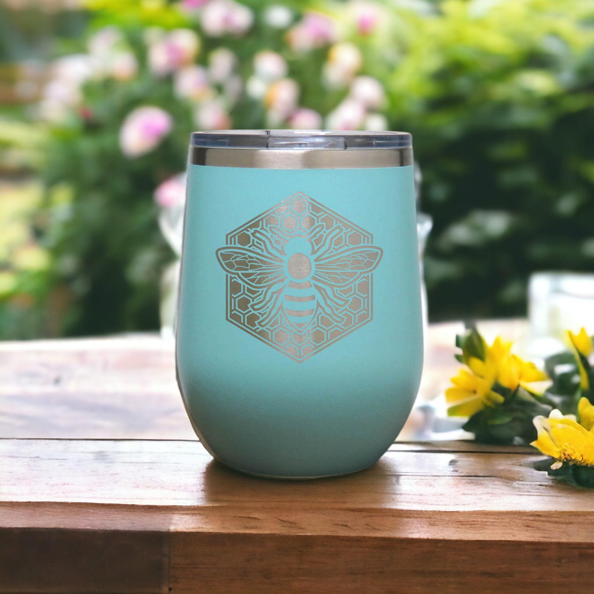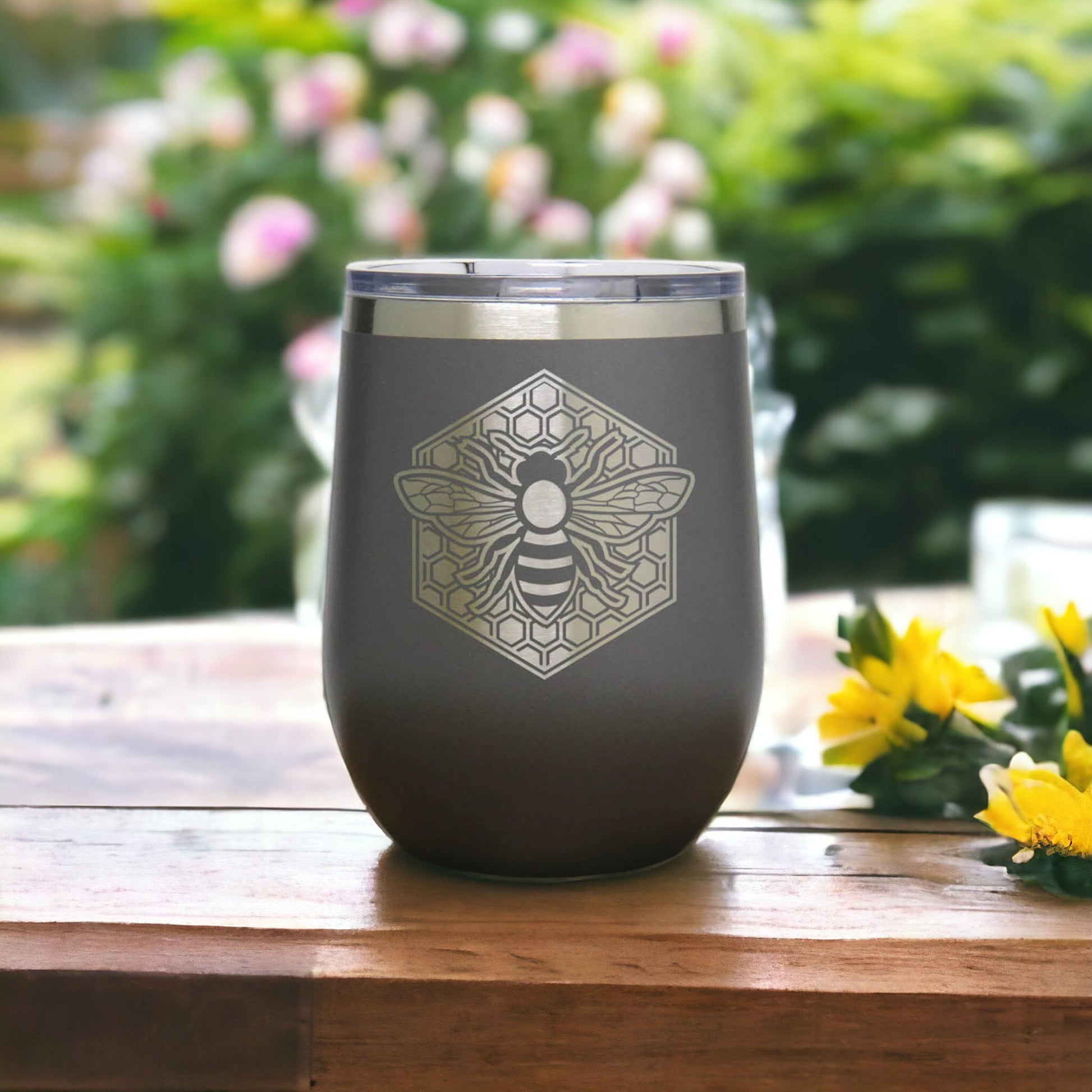 Bee engraved wine tumblers make excellent gifts for Moms, Dads, Aunts, and Uncles and just about anybody else who want to look cool as well as keeping their wine cool on a hot summer's day.