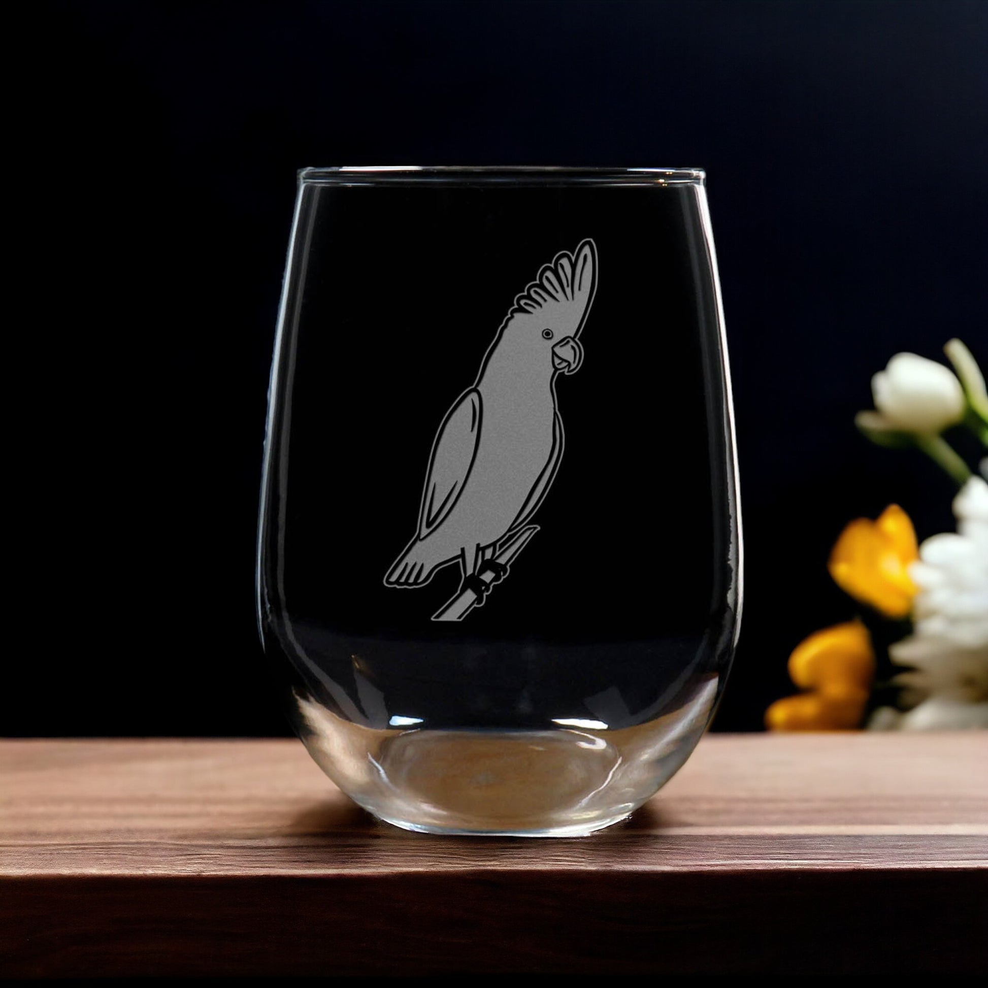 Cockatoo 17oz Stemless Wine Glass - Bird Lovers Personalized Gift
