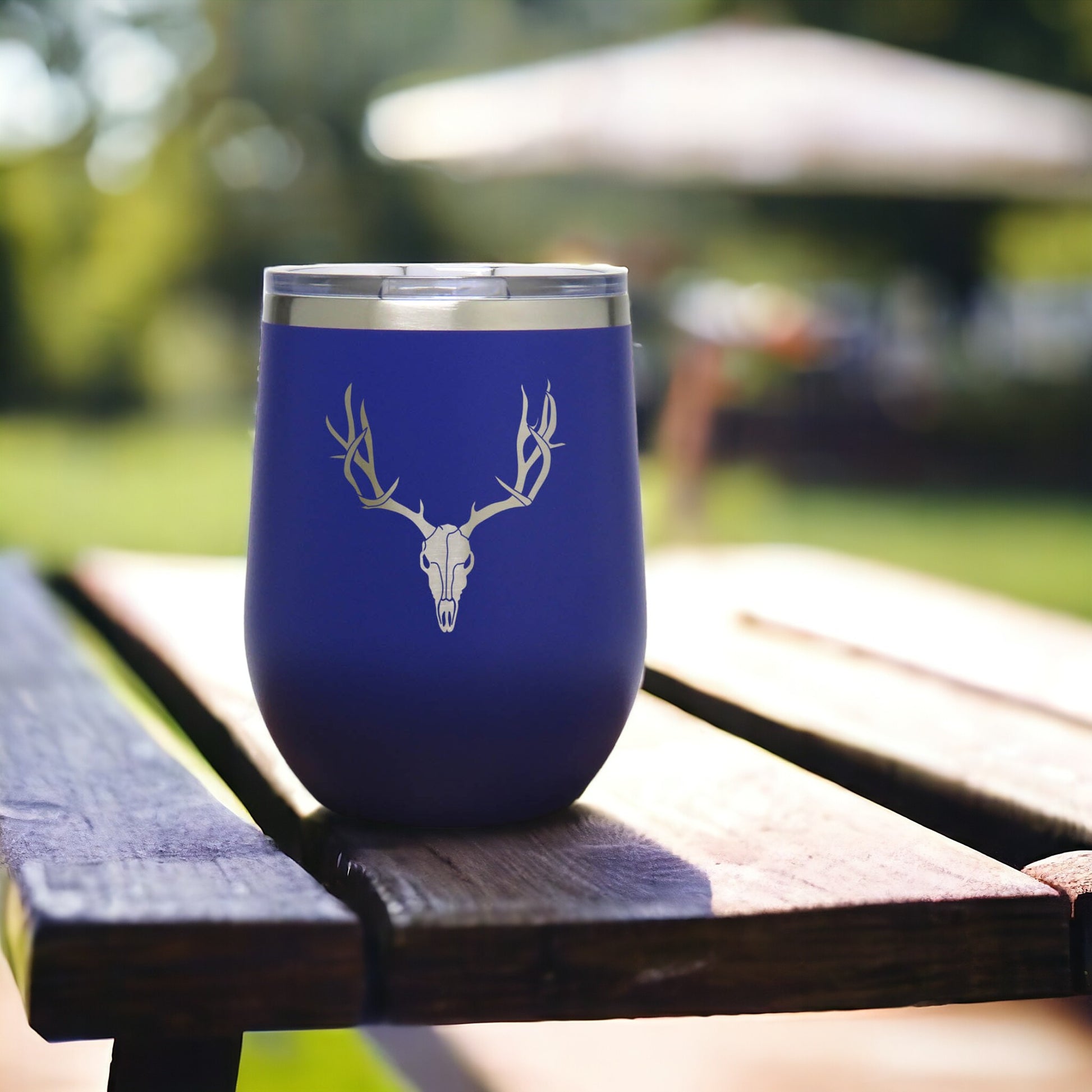 Deer Skull and Antlers 12 oz Insulated Stemless Wine Tumbler Stainless Steel - Design 2