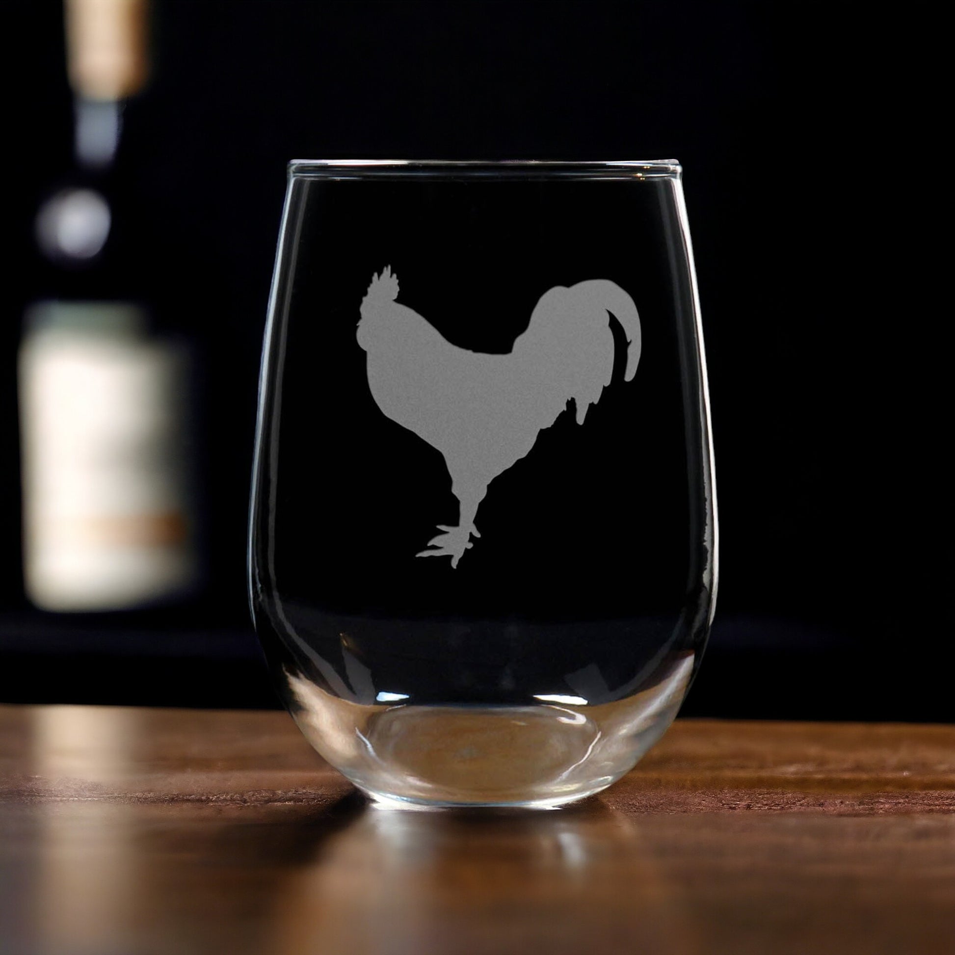 Rooster 17oz Stemless Wine Glass - Chicken Personalized Gift