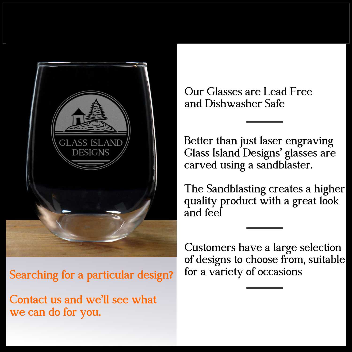 All our stemless wine glasses are sand carved creating a deeper etched image than laser engraving that will never fade or wear off.